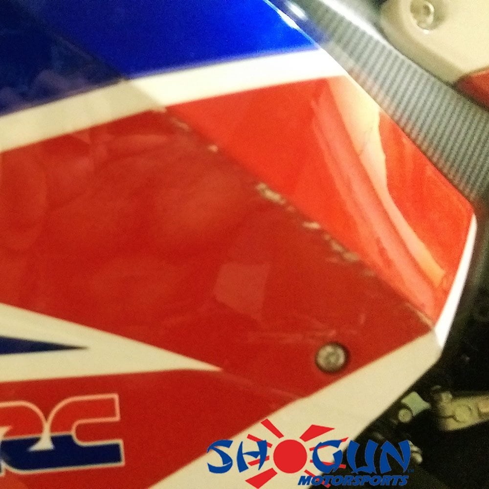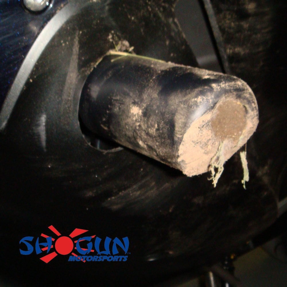 Shogun frame sliders are superior to other frame slider brands by virtue of their construction and material. Shogun pucks are made of shatter-proof UHMW infused with UV protective polymer. Shogun pucks absorb kinetic energy from crashes and will not shatter in cold temperature like some types of Delrin or fade in the sun. Each puck has a press fit aluminum bushing to hold it in place during impact to reduce the risk of the puck tearing off of the mounting point. Shogun frame slider offsets are CNC machined from the same grade aluminum as military aircraft. Offsets are anodized black to match OEM components. Each offset is manufactured to stringent specifications with ISO 9000 quality control. Each Shogun Frame Slider comes with high tensile strength corrosion resistant hardware (cheap imitators do not use high grade hardware and will quickly rust). Shogun uses socket head bolts in nearly every kit, allowing for stronger frame slider design in a more compact space. Newer applications of Shogun Frame Sliders make use of a counter sunk design, which distributes the force of impact over a wider area and gives additional strength to the system so that the puck remains attached to the motorcycle.