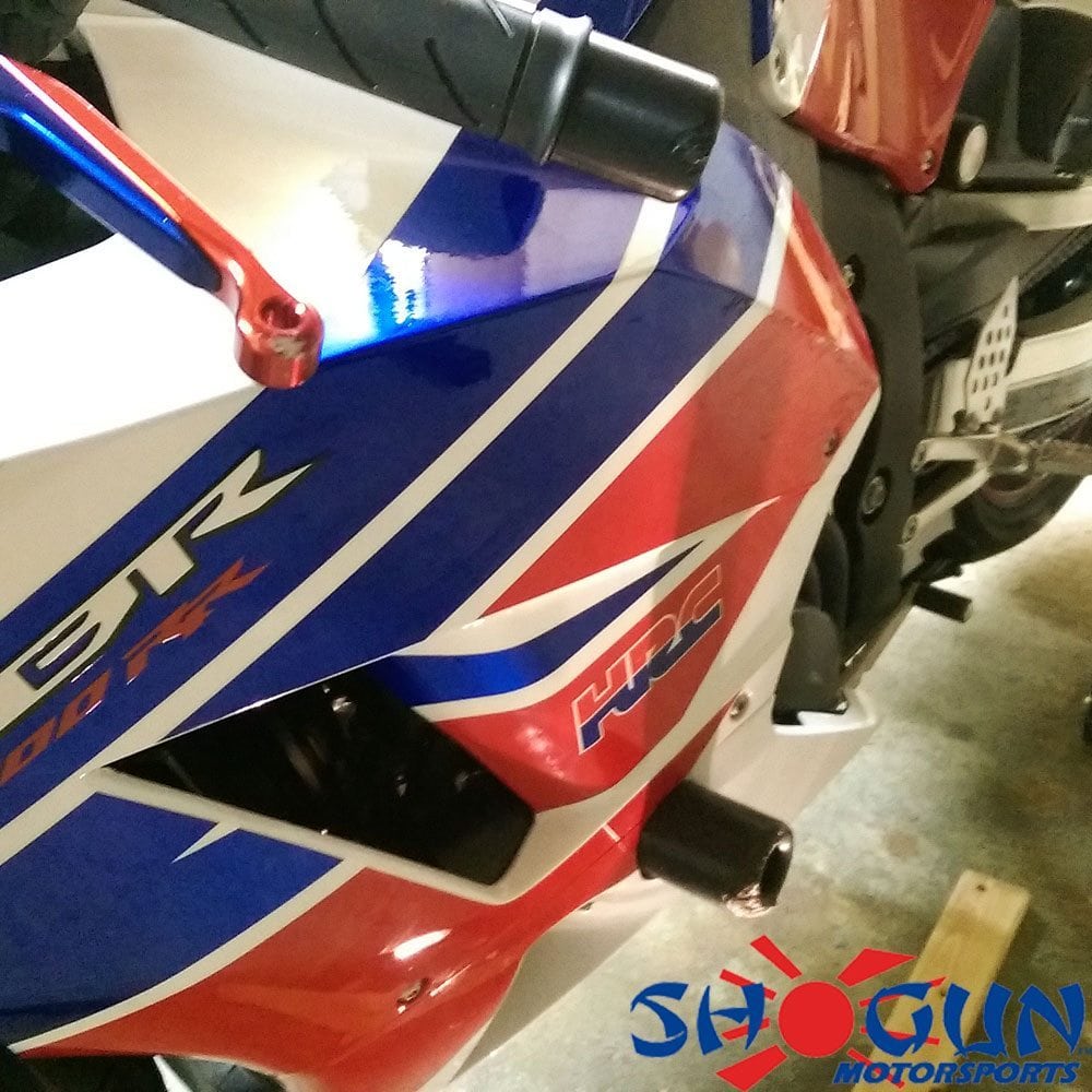 Shogun offers the rider a wide selection of frame sliders for nearly every type of rider. Shogun offers many popular selections in no cut style and also in direct mount option. Shogun Frame Sliders come in standard black, white, chrome, and even carbon fiber.